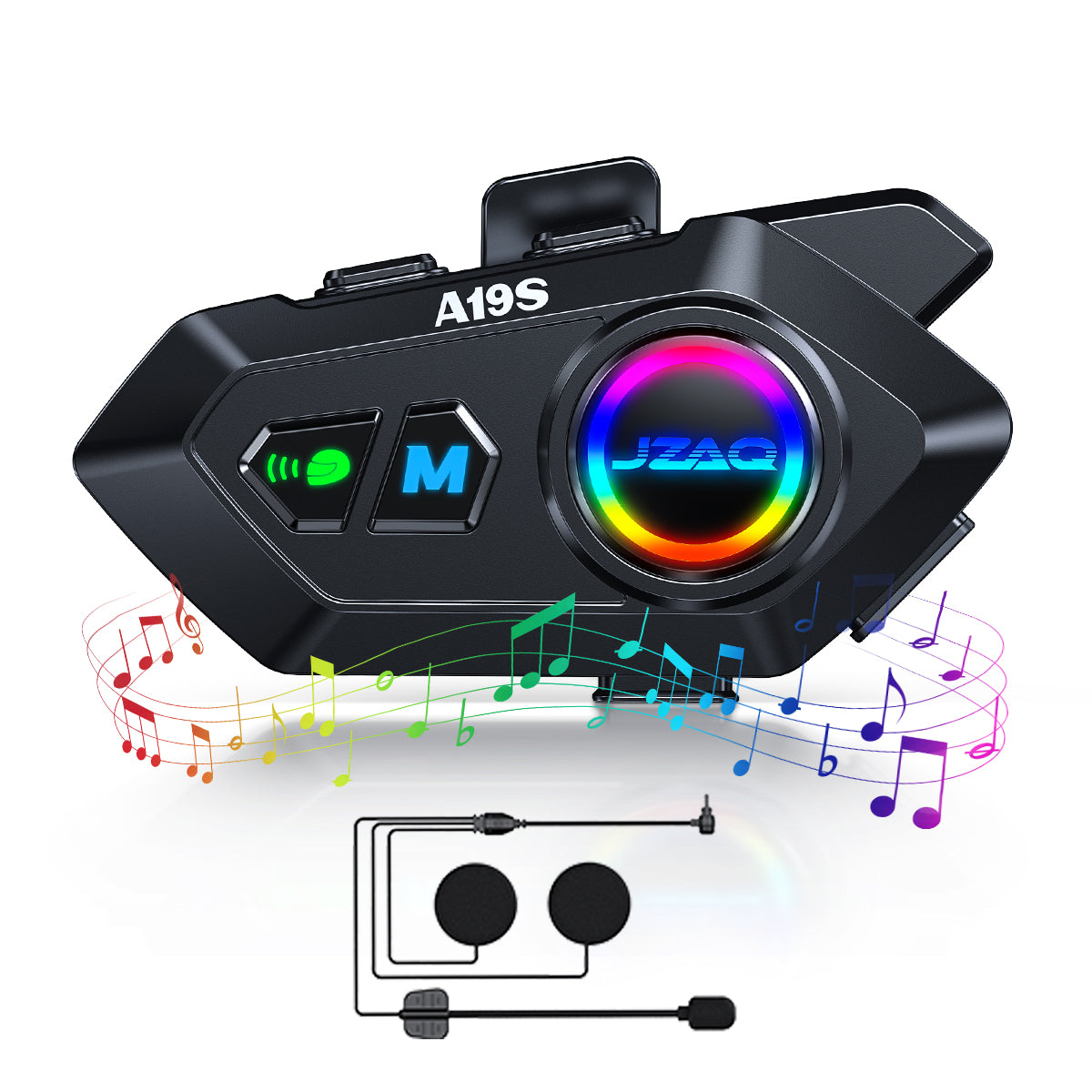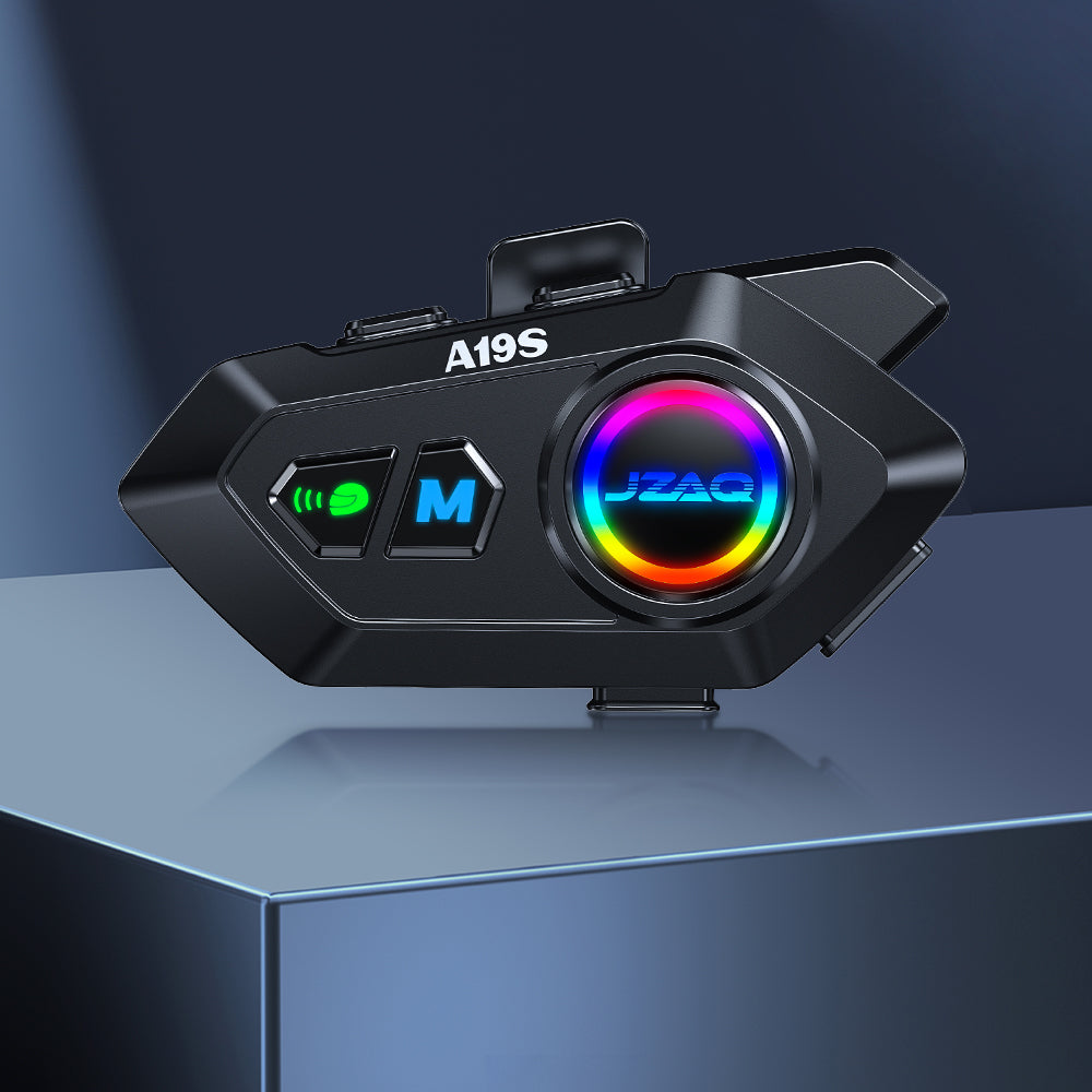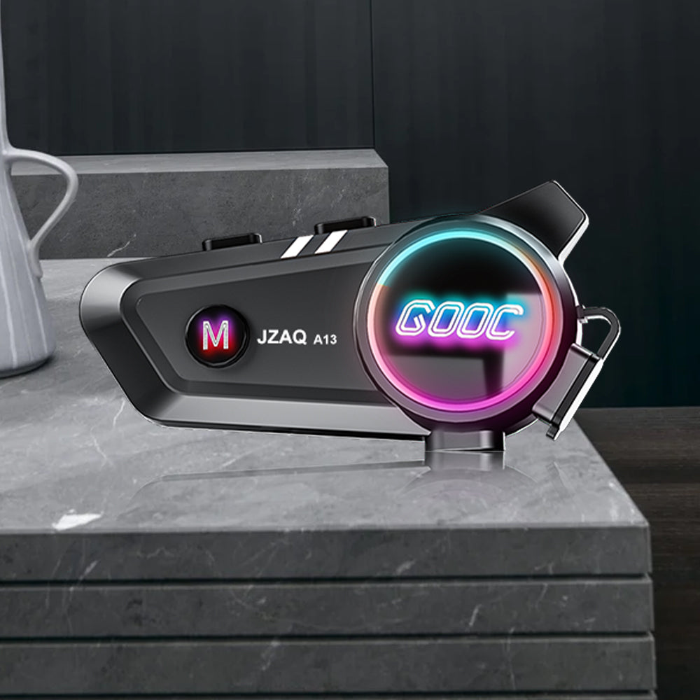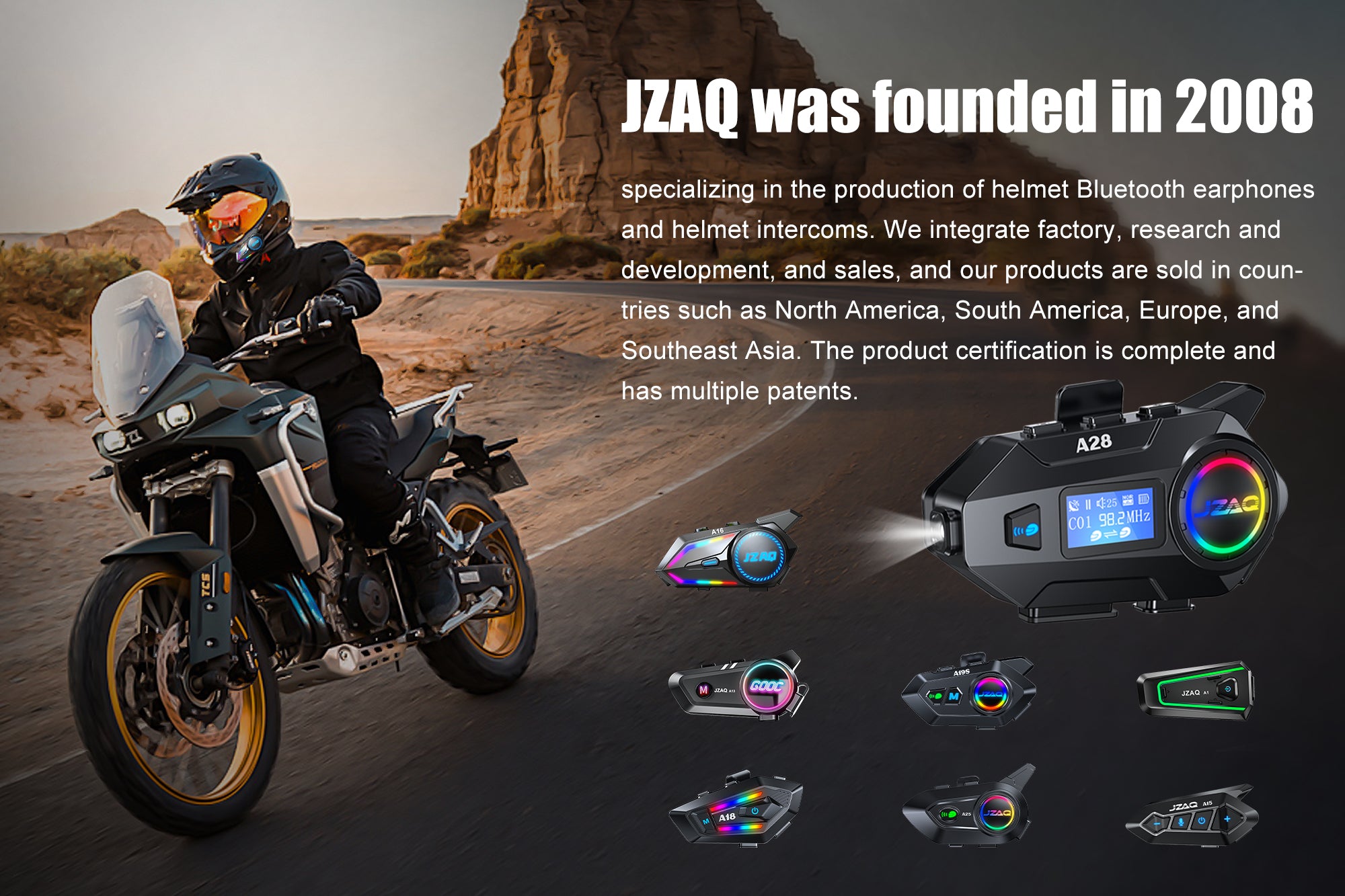 JZAQ A28 helmet speakers bluetooth wireless.The phone functions are displayed on the LCD screen of the earphones. Support simultaneous communication between two people; lighting effect.。1000mAh battery, IP67 waterproof.JZAQ Motorcycle accessories. Suitable for all types of helmets. A28 motorcycle helmet bluetooth have flashlight function that can illuminate.