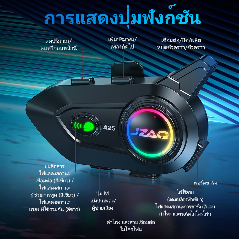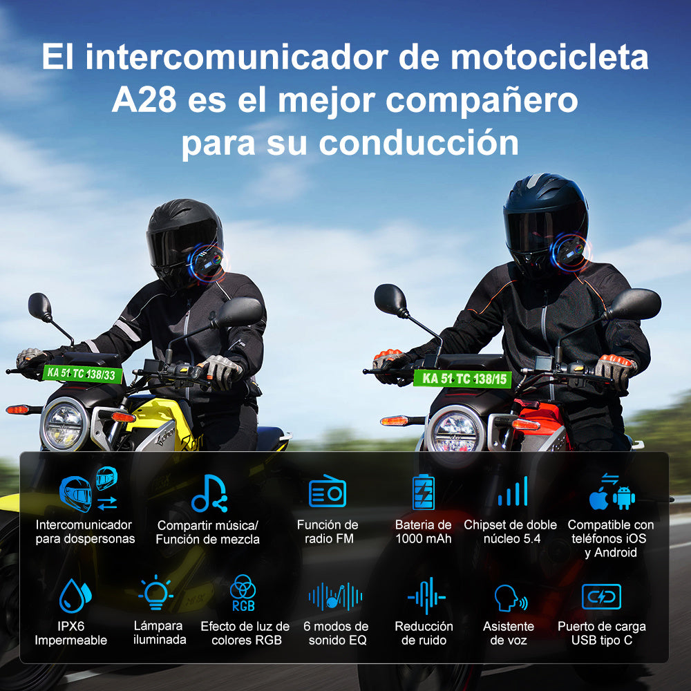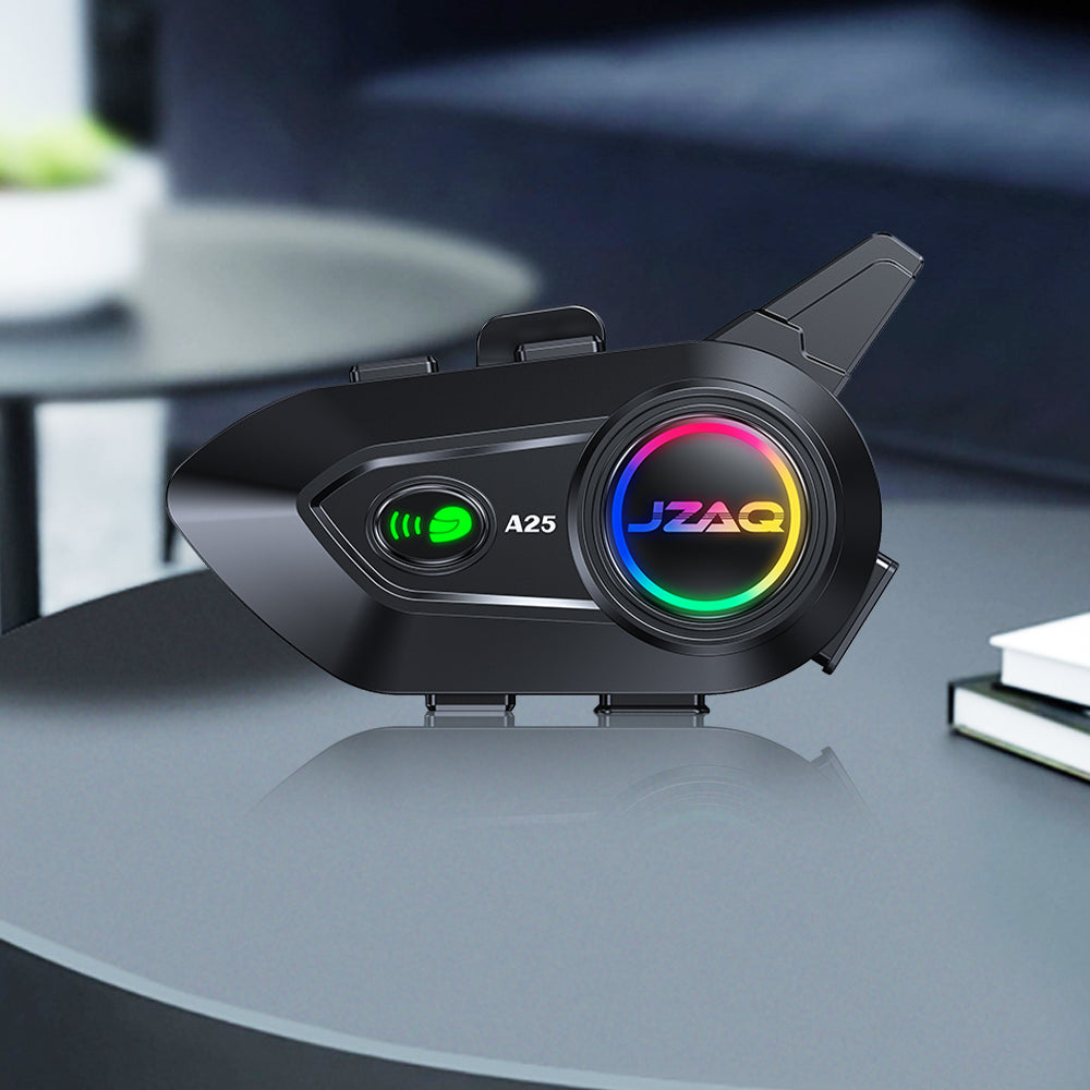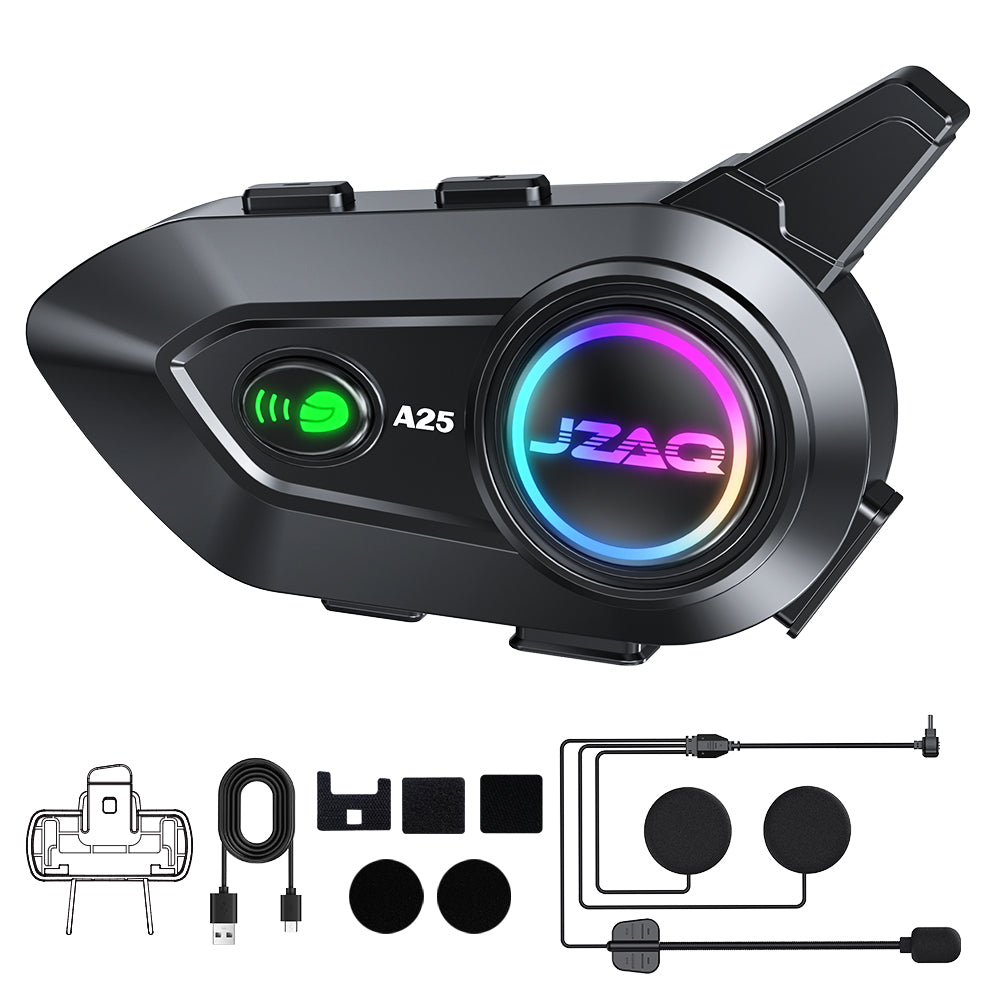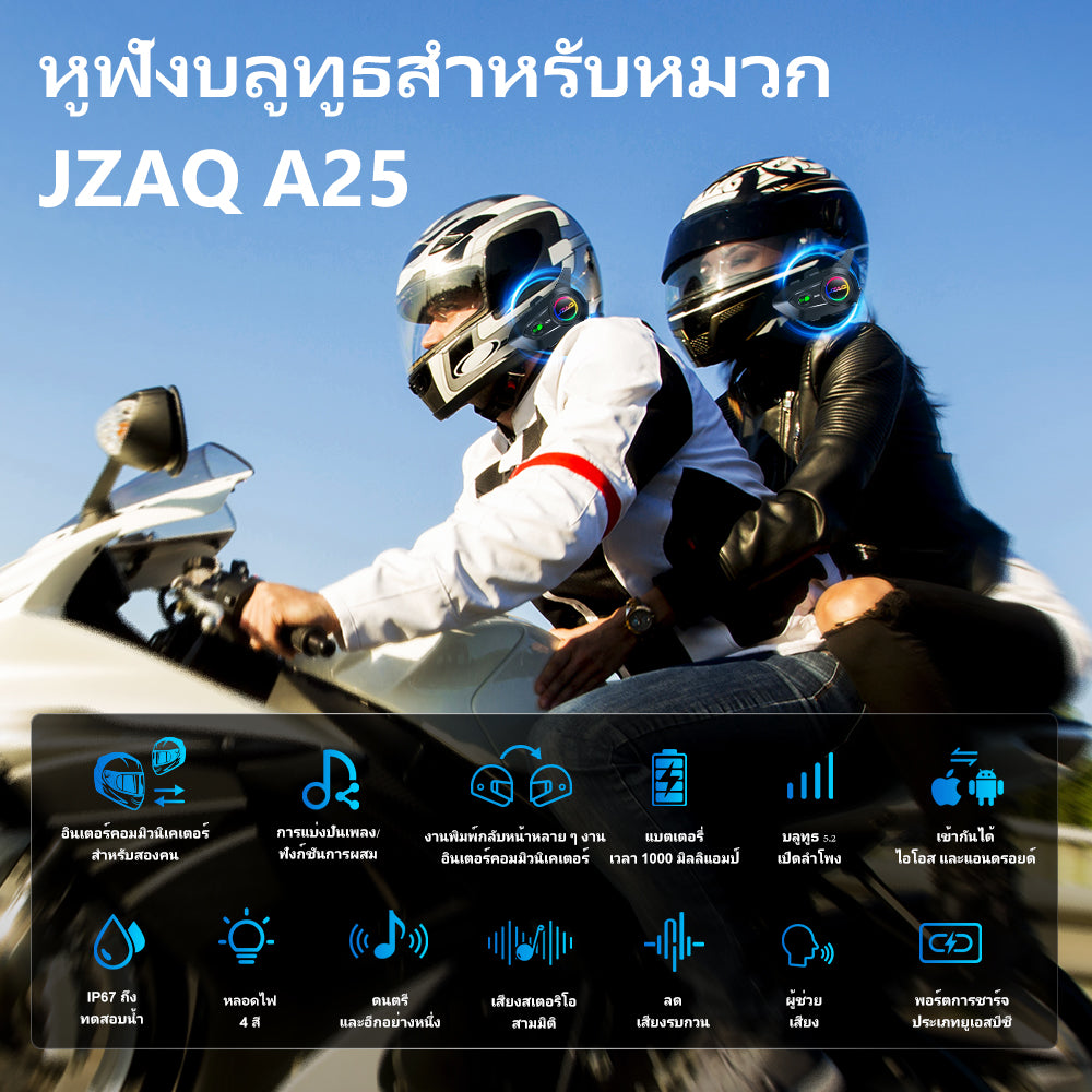 JZAQ A28 helmet speakers bluetooth wireless.The phone functions are displayed on the LCD screen of the earphones. Support simultaneous communication between two people; lighting effect.。1000mAh battery, IP67 waterproof.JZAQ Motorcycle accessories. Suitable for all types of helmets. A28 motorcycle helmet bluetooth have flashlight function that can illuminate.