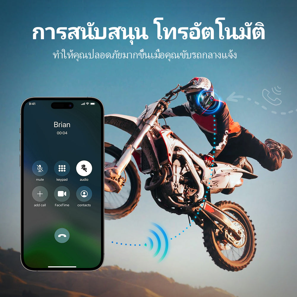Supports 2-person 500-1000 meter intercom, Bluetooth 5.4. There are music sharing and mixing functions. Cross brand intercom, capable of connecting to other brands' intercoms. High definition sound quality, DSP noise reduction sound effect.